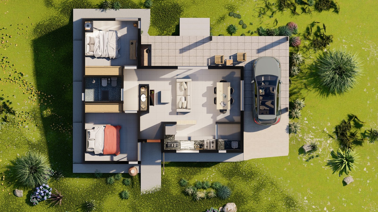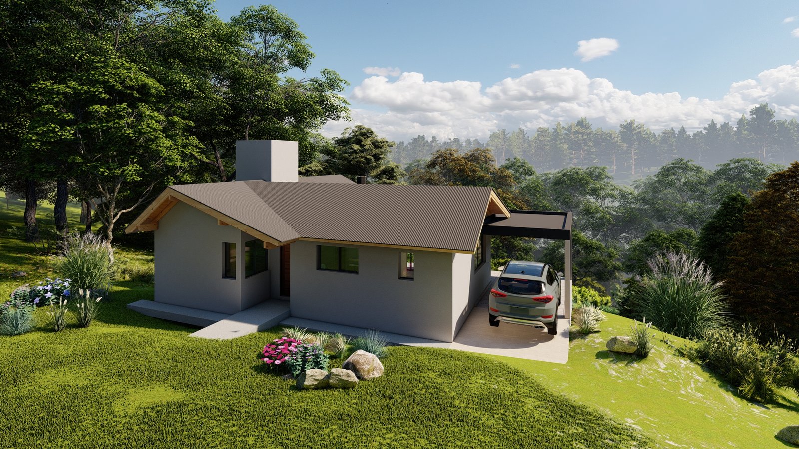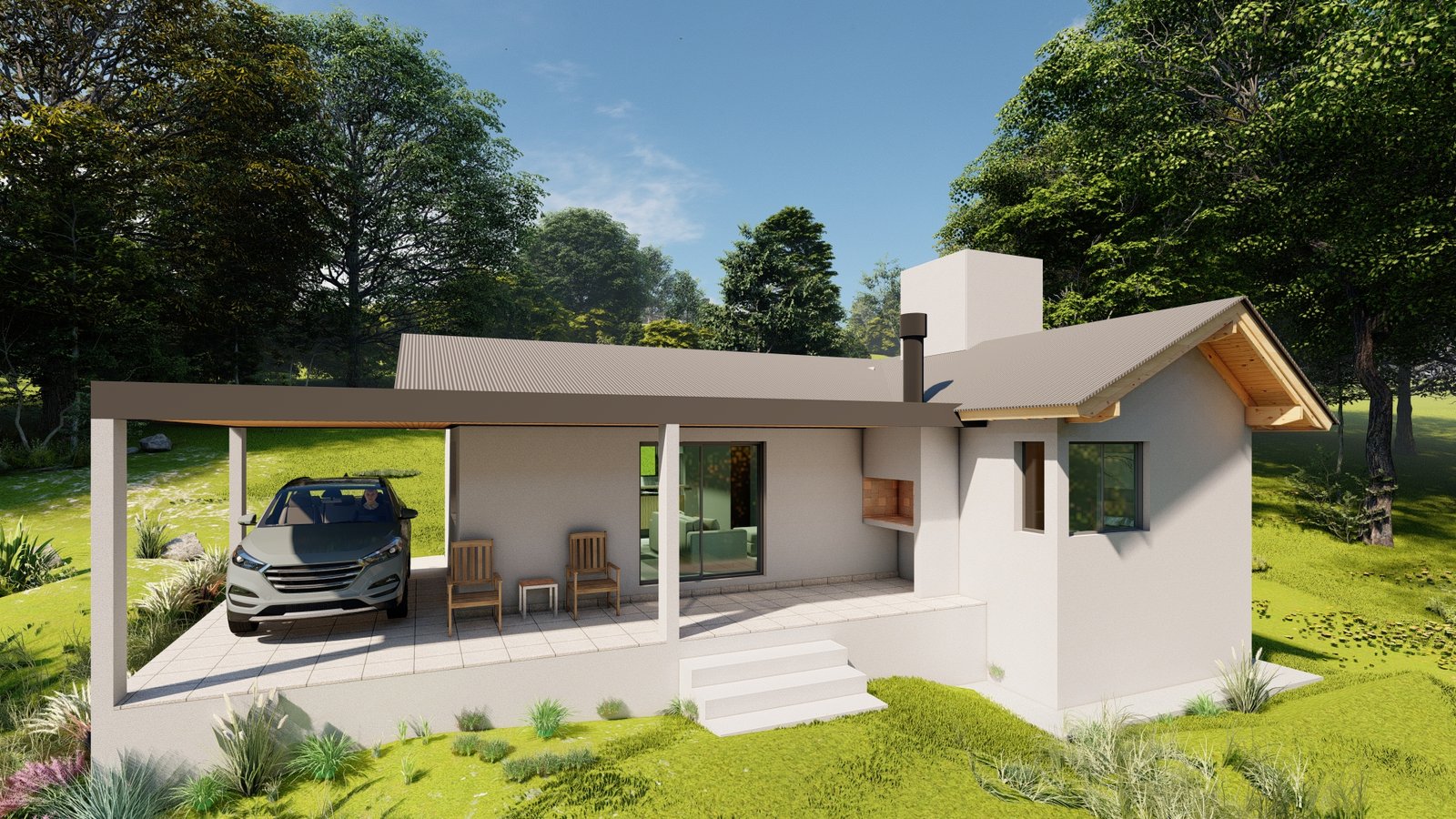 2 dormitorios. 1 baño con antebaño. Cochera con asador
